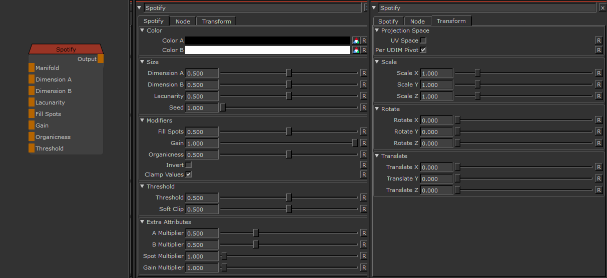 Spotify is made up out of 2 different noises. DimensionA controls the frequency of the main noise