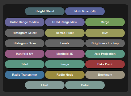 Favorite Node Hotbox Quickly access your frequently used nodes in the Nodegraph Hotkey F6 |