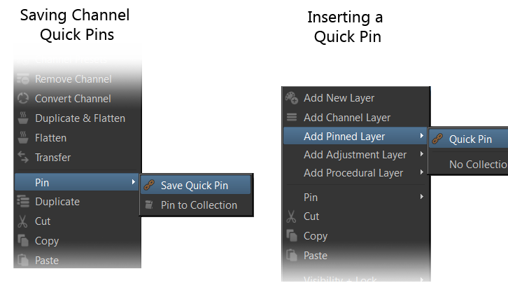 Collection Pins allow you to turn Channels into 'sticky' items on your Layers menu,