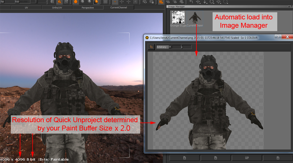 - The Channel will be unprojected at two times your paintbuffer resolution or maximum 16k