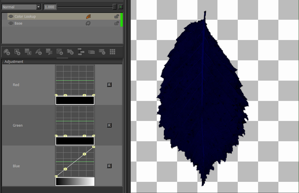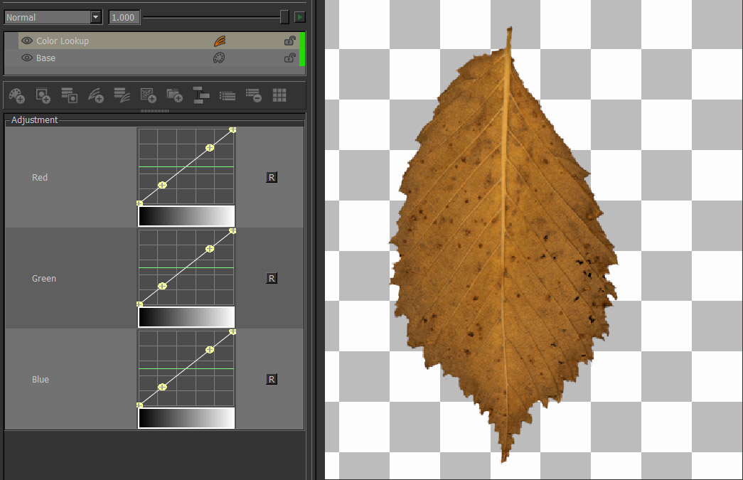 1) in the first image below we have a simple texture with a Color Lookup Adjustment applied