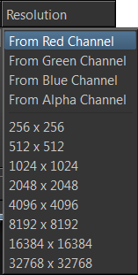 Resolution can be inherited from any of your selected Channels in the Red Channel,Green Channel, Blue Channel or Alpha Channel
