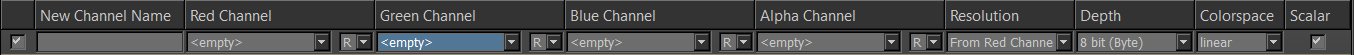 Channel Name Based The contents of the Red, Green, Blue and Alpha Channel Boxes are name based. If you load a preset that contains a link to a channel 'Diffuse' while in your current project no such channel name exists, the Channel will default to <empty> and will be filled with black |