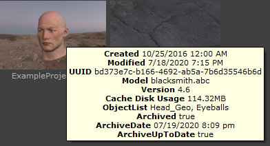 - UpToDate (true/false) - If the project on disc is the same as the archive this will display true and a green icon will