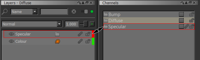 Sample of a Channel "Specular" shared into another Channel "Diffuse":