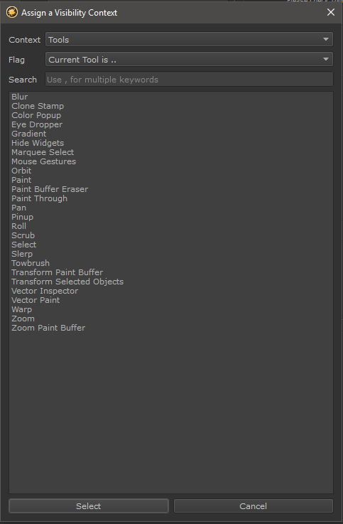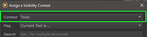 The Tools Context allows you to show or hide a hotbox element based on the currently active (or not active) Mari Tool.