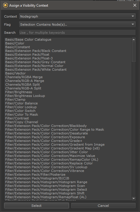 The Nodegraph Context allows you to show or hide a hotbox element based on the current selection of nodes in the Nodegraph.