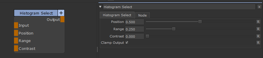 The Histogram Select Node allows you to select a value range from a grayscale input