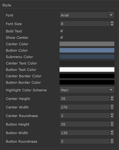 The Radial Indent determines the space between buttons on the first row in the Top and Bottom Section of the Menu