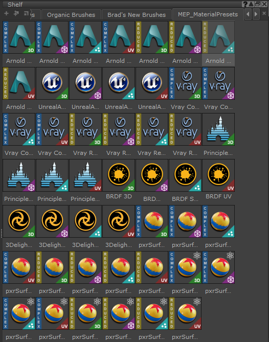 Extension Pack installs several Material Presets both to the MEP_MaterialPresets of the Shelf Palette as well as to the