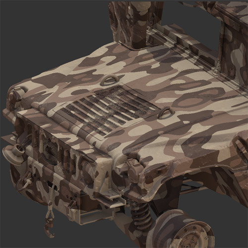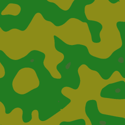 Military Camo creates a simple camouflage pattern. By layering multiple nodes on top of each other (and setting one of the colors to transparent)