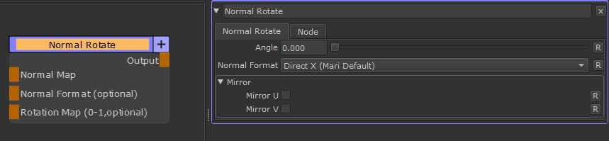 Normal Maps imported as textures and created from other applications have a fixed orientation. Rotating the imported normal map after the fact in Mari