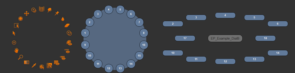 Two separate examples of Radial Hotboxes. Radial Hotboxes can have a maximum of 8 Buttons.