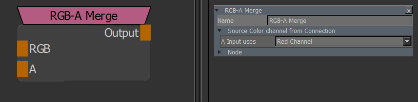 The RGB-A Merge Node allows you to pack one RGB Channel from one source and one Greyscale Channel from another into a single RGBA Output