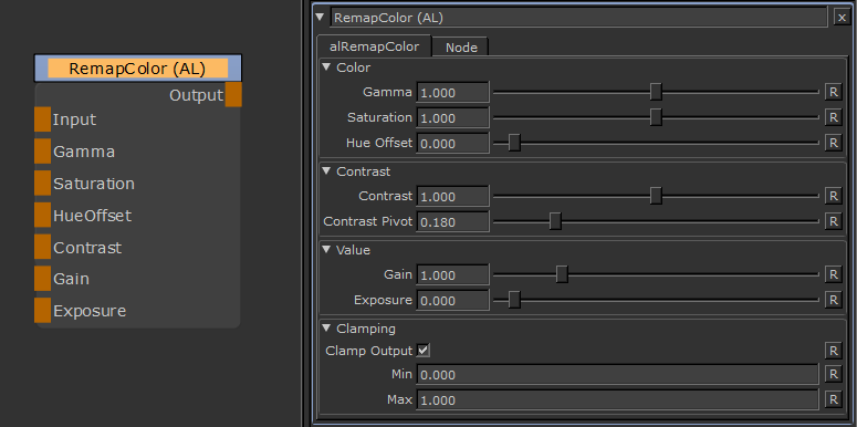 Please note other than alRemapColor Node inside alShaders this Mari implementation has additional Clamping functionality.