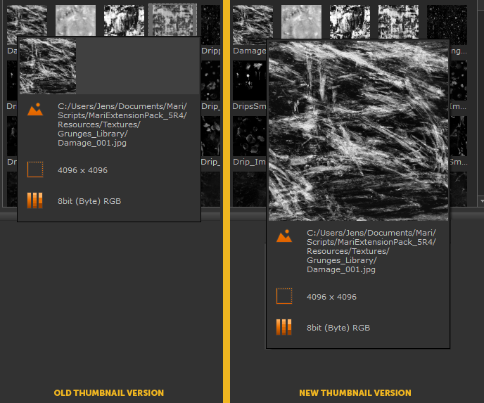 If you have installed and used Mari Extension Pack in a previous Mari Version, the Preview Thumbnails are picked up