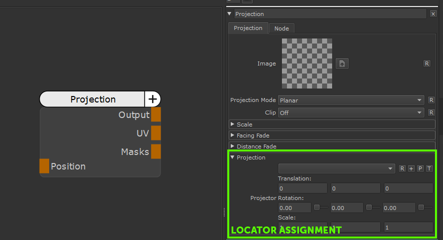 Some Nodes and Material Templates allow the user to assign a Locator to them to transform them in the viewport.