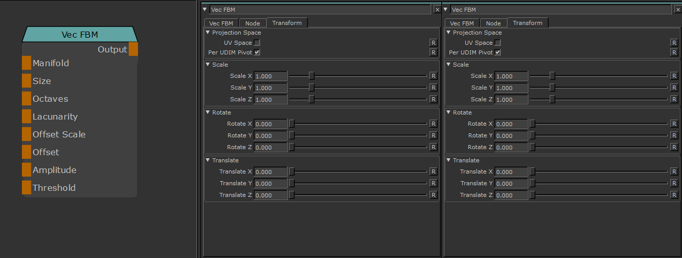 Vec FBM ('Vector Fractal Brownian Motion') is similar to FBM+ but with an additional directional component, giving more organic results.