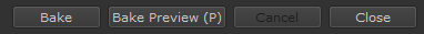 The Bottom Row Dialog Buttons execute or Cancel the Baking.