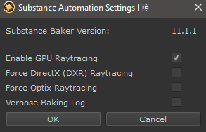 - Substance Automation Toolkit specific settings (path, tool configuration etc.)