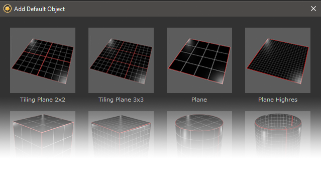 • The 'Add Default Object' Dialog in the Object Palette now shows preview icons of the Objects. UV Cuts are highlighted.