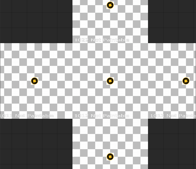 An Example of a single instance of an image placed - non tiling within UDIMs - into each UDIM