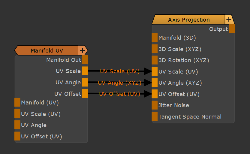 Example of using new Manifold UV Outputs do drive settings on a Triplanar Node
