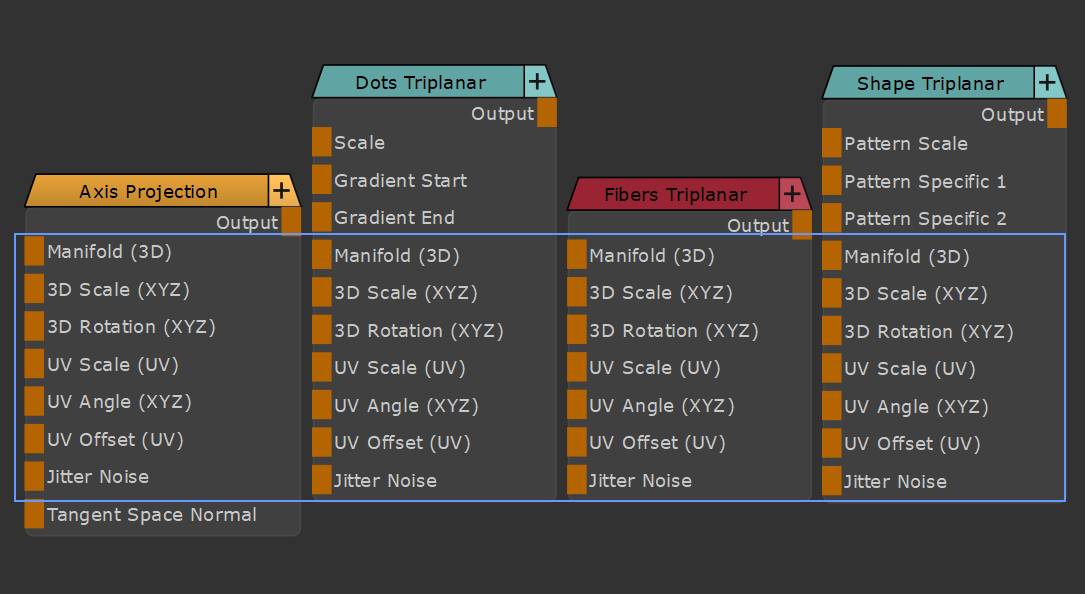 Example of a few triplanar nodes with new conistent port names and port ordering
