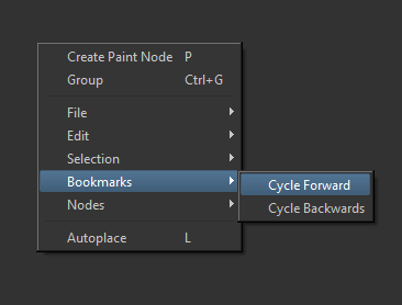 By utilizing the Cycle Forward and Cycle Backwards commands you are able to jump your nodegraph view to the different bookmark nodes available in your current graph tab.