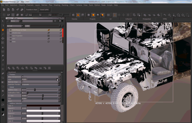 Sliders are ranged up to 10.0 to allow for easy modification of colors with a mask value lower than 1.0