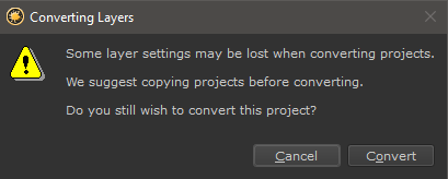I am getting a 'Convert Layers' Dialog on Project Open |