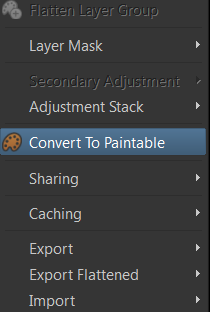 Convert to Paintable is an improvement on Mari's identically named option but allows for multi layer selection / conversion.