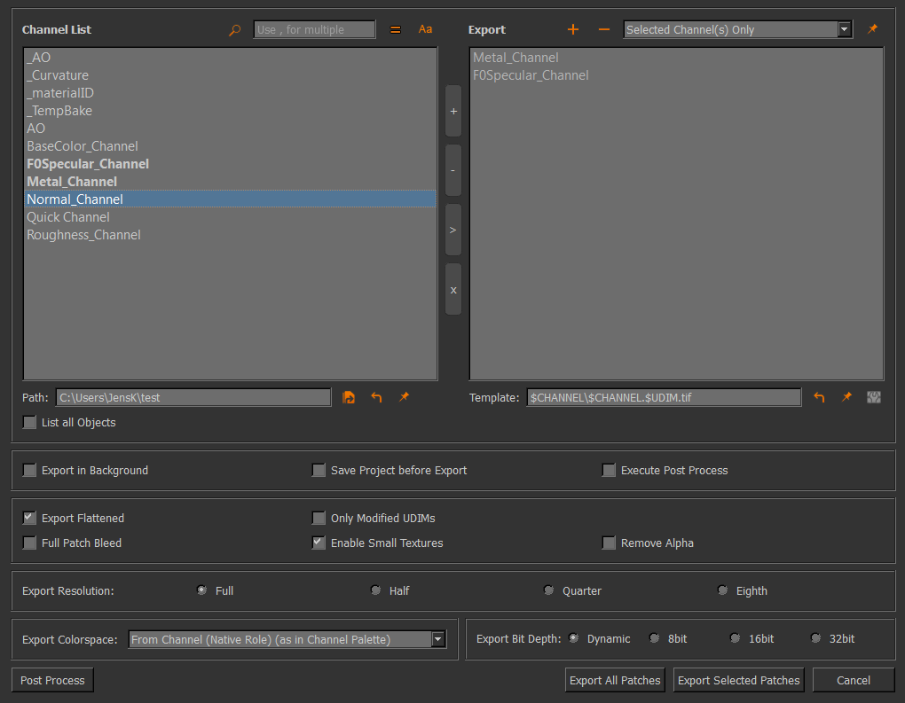 Export Custom Channel Selection is a new Export Mode available in MARI that allows you to batch export a custom list