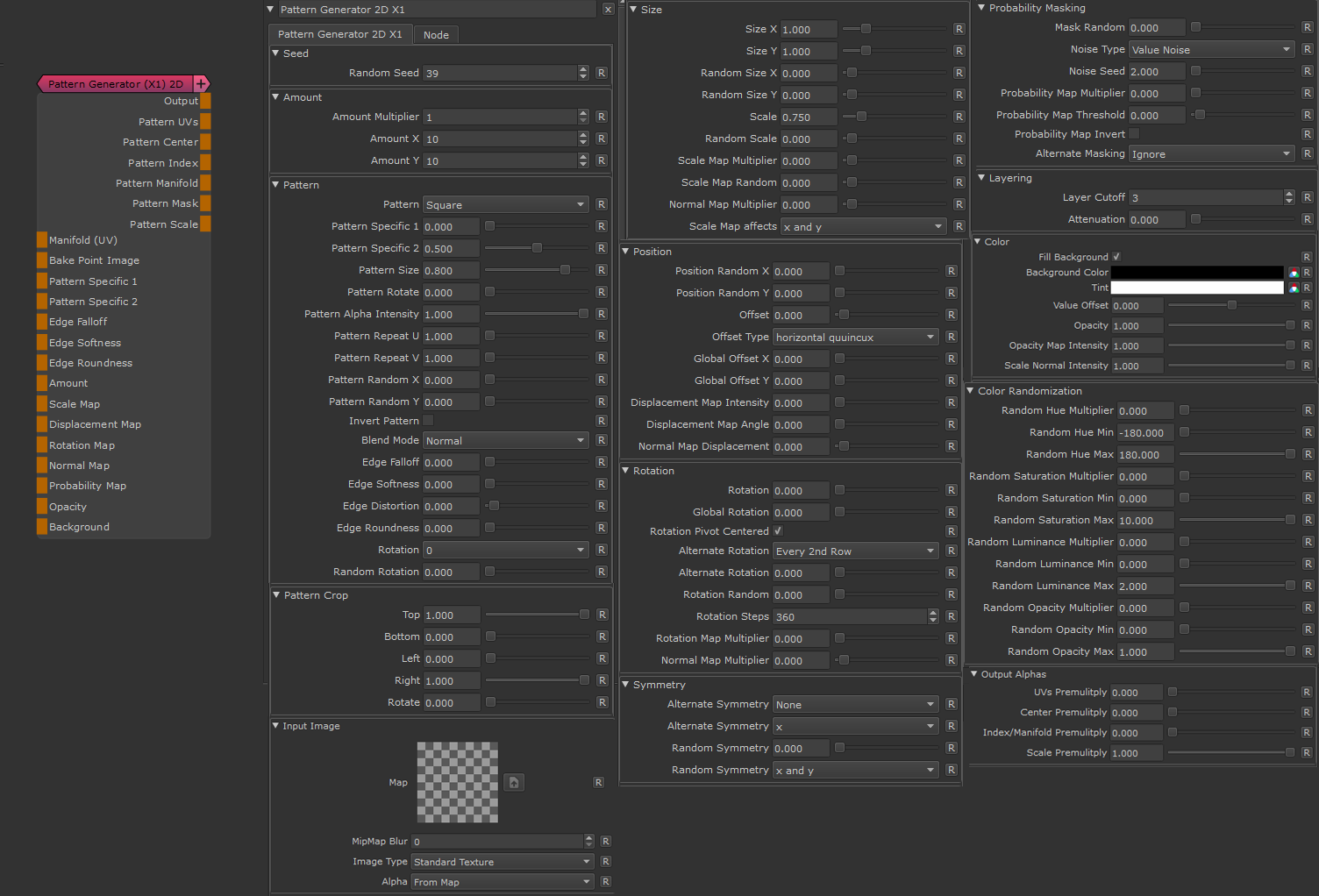 (Pattern UVs, Pattern Center, Pattern Index, Pattern Manifold and Pattern Scale)