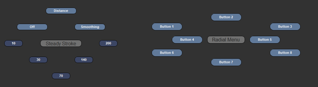 Two separate examples of Radial Hotboxes. Radial Hotboxes can have a maximum of 8 Buttons.
