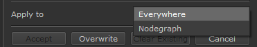 'Nodegraph Only' Shortcuts Nodegraph only shortcuts that can be configured via this dialog are only available in Mari 4.6v4 or higher. In previous Versions Nodegraph Shortcuts need to be manually configured via the standard Mari Shortcut Editor |