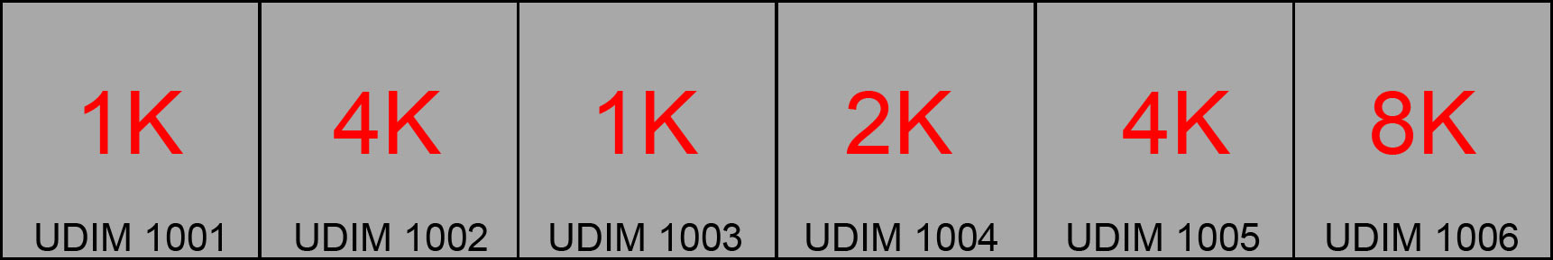 Sample of a channel with mixed UDIM Resolutions