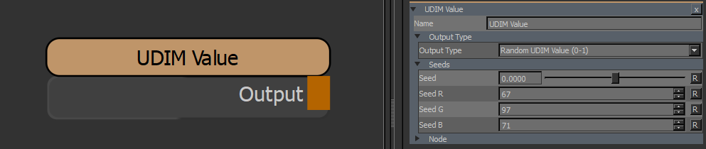 When using Output Types Random Udim Value and Random Udim Color, this give you explicit control over each random value that make up