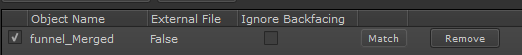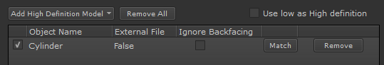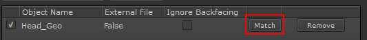 Object Matching can be configured via the Match Button next to Objects in the High Definition Mesh List