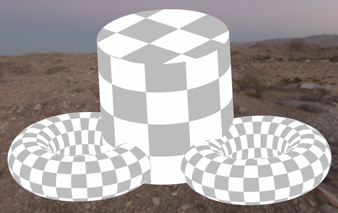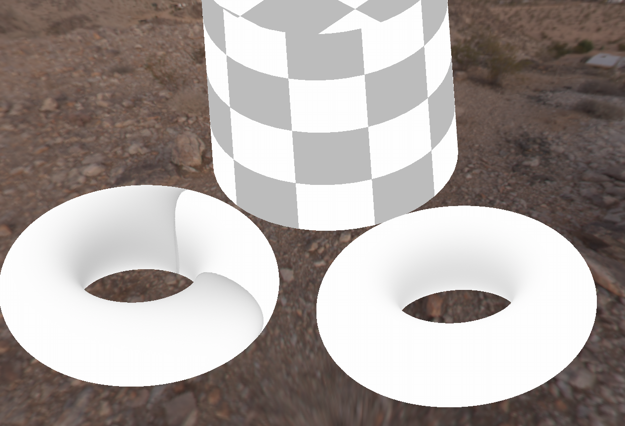 - Moving the Cylinder we can see that only the torus on the left is affected by occlusion cast by the cylinder
