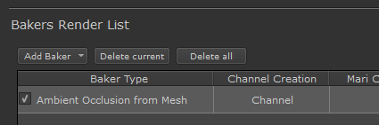 - We add a 'from Mesh' Baker to the Baker List, here an Ambient Occlusion from Mesh.
